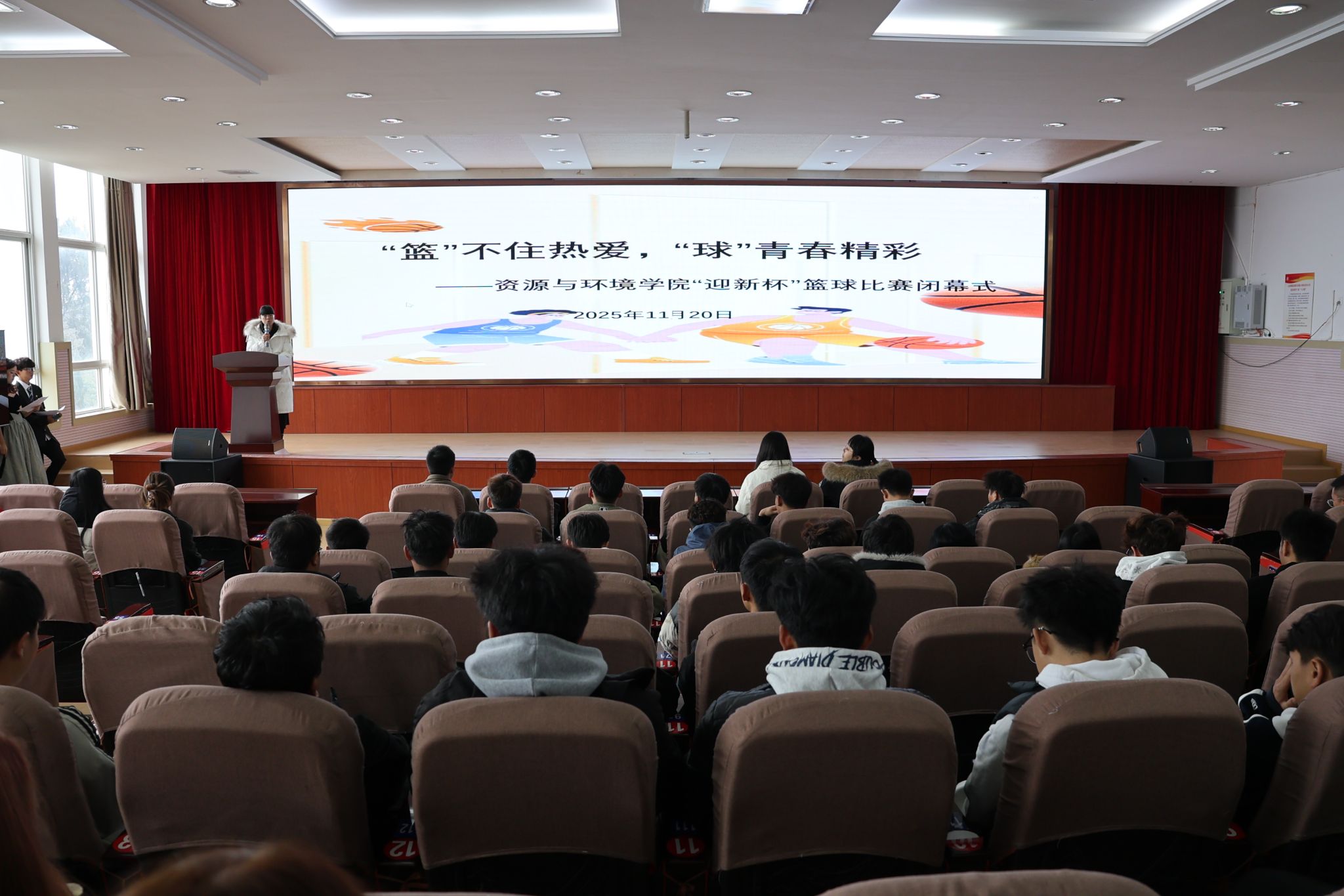 11月20日,资源与环境学院在博学楼508报告厅举行2025年“迎新杯”篮球赛闭幕式。