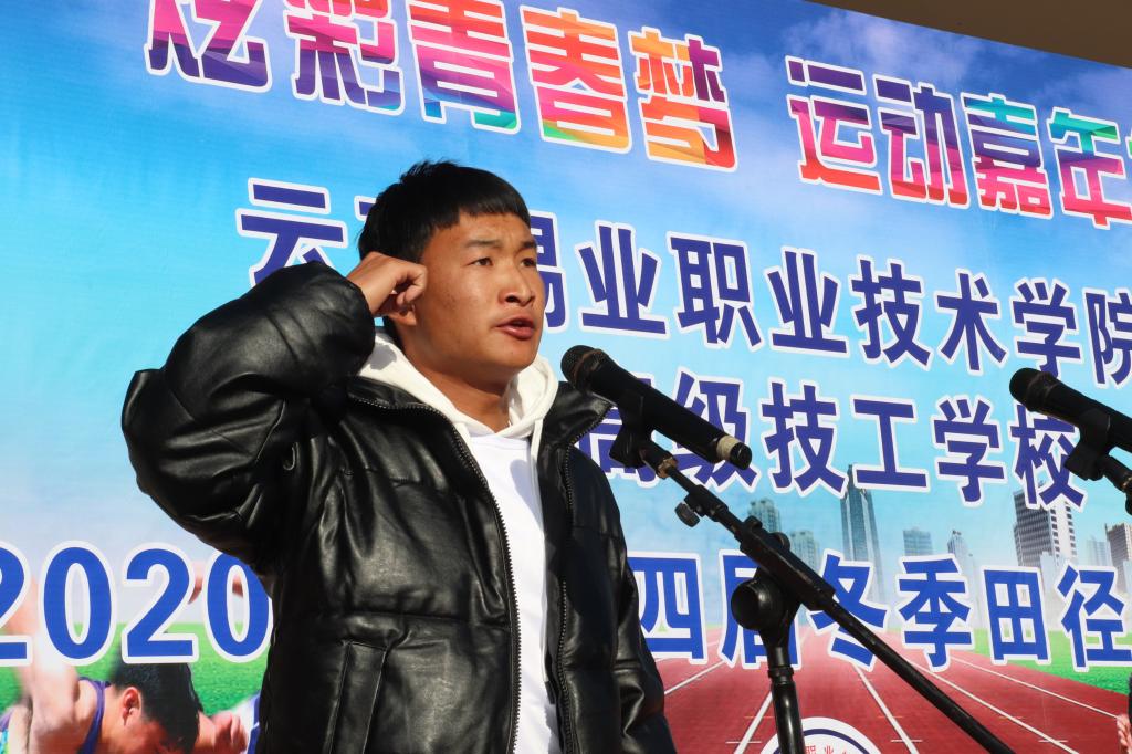 杲杲冬日,万里无云。12月9日,学院2020年第十四届冬季田径运动会在运动场隆重开幕。学院院长李蕾致开幕词,党委书记张鹏宣布田径运动会开幕,副院长曲向哲主持开幕式,纪委书记高志明、副院长张惠芬、曲靖农校负责人何志明等出席开幕式。