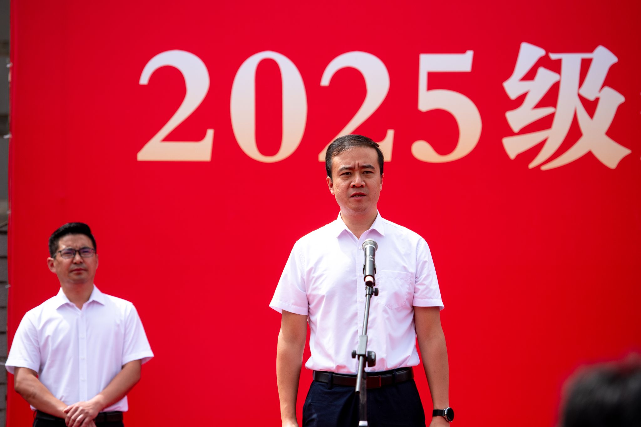 学院党委副书记、院长李蕾代表学院全体师生员工,向2025级新生致以诚挚的欢迎,并提出殷切的期望:一要坚定理想信念,心怀“国之大者”,将“青春小我”融入“时代大我”,成为“眼中有光”的追梦者;二要脚踏实地,立足当下,从小事做起,笃行实干,成为“行稳致远”的奋进者;三要锤炼过硬本领,深耕专业知识,苦练实操技能,提升综合素养,成为“肩上有责”的行家里手;四要修身立德,注重个人私德修养,学会勤俭自律,践行社会公德,懂得感恩谦让,成为“心中有德”的践行者;五要淬炼优良作风,从军训中感悟家国担当,严守纪律规定,端正训练态度,成为“身上有魂”的好青年。
