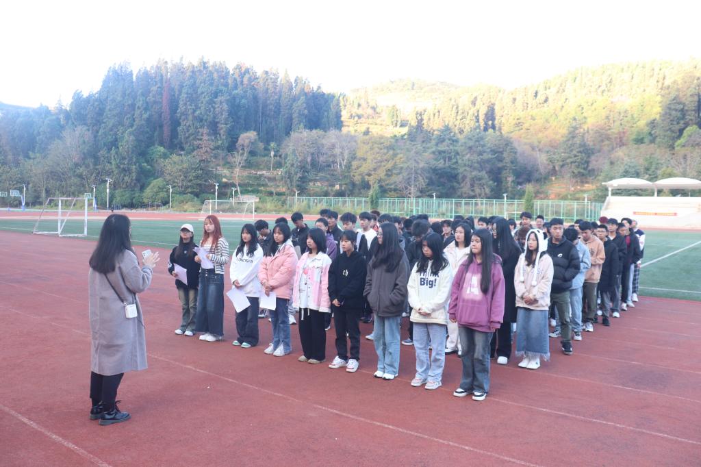 12月12日上午,为弘扬好中华体育精神,激励青年大学生追求卓越,奋勇争先,成就出彩人生,学院思政课教师段洪梅为80余名青年学生代表在国旗下开展了以“把荣耀写在旗帜上 弘扬中华体育精神”为主题的“行走的思政课”实践教学活动。