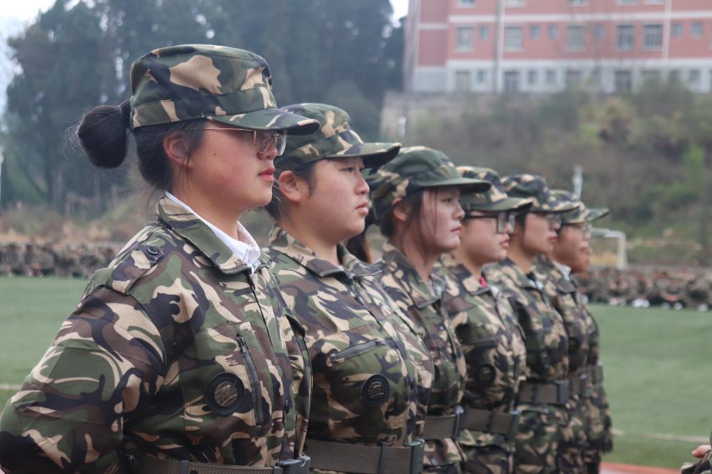 “全体都有”“稍息”“立正”“向左转”“跑步走”……随着教官铿锵有力的口令,同学们动作干净利落、整齐划一,目光如炬,身姿挺拔,展现了“请党放心,强国有我”的决心。
