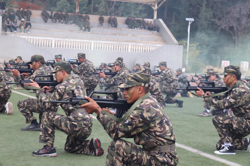 “哪有什么岁月静好,不过是有人替你负重前行”。战术演练将军训汇演推向了高潮,他们端着冲锋枪,匍匐前行,不畏强敌,身姿矫健,脚下生风,动作一气呵成、凌厉有力,尽显青年之勇担大任、豪情满怀。