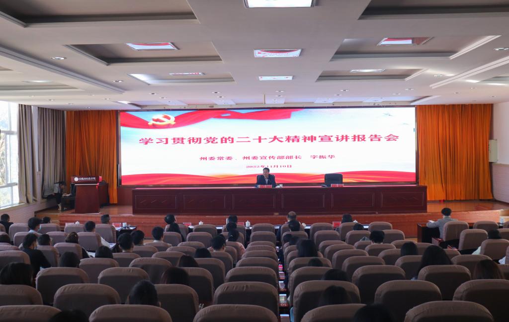 11月10日,州委常委、州委宣传部部长字振华来到学院为师生们宣讲党的二十大精神。党的二十大是在全党全国各族人民迈上全面建设社会主义现代化国家新征程、向第二个百年奋斗目标进军的关键时刻召开的一次十分重要的大会,在党和国家历史上具有划时代、里程碑的重大意义。宣讲中,字振华结合红河州实际情况,从深刻领会和感受新时代十年的伟大变革,把握好中国式现代化是什么、怎么做的问题,以及深入学习贯彻党的二十大精神三...