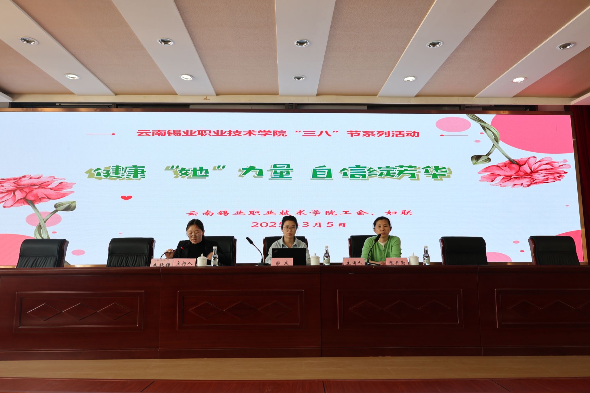 为深入贯彻习近平总书记关于健康中国建设的重要指示精神,进一步增强学院女性同胞的健康意识,营造关爱女性同胞的良好氛围,3月5日,学院工会、妇联开展“健康‘她’力量 · 自信绽芳华”专题讲座。本次活动邀请到红河州第三人民医院乳腺外科主治医师彭庆,红河州第三人民医院主任医师、科室副主任陈并勤为大家现场授课,两位医师凭借其丰富的专业知识和临床经验,围绕女性健康卫生、“两癌”预防、女性自我保健等方面,通过真实的案例和形象的图片,...