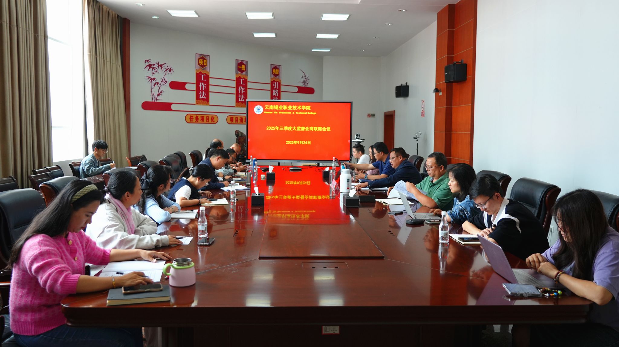 9月24日,学院召开2025年三季度大监督会商联席会,学院纪委书记张云生主持会议并做总结。针对四季度工作,张云生要求:一要牢固树立风险意识,结合岗位职责、业务流程和职权行使,精准识别业务与廉洁风险,重点关注职权集中和资源富集的部门,及时报告、防范和制止风险,力求将风险降至最低;二要牢固树立制度意识,明确制度在教育、培训、双高建设等多个环节中的关键作用,要求管理人员严格按照制度管人管事,确保制度执行无例外,...