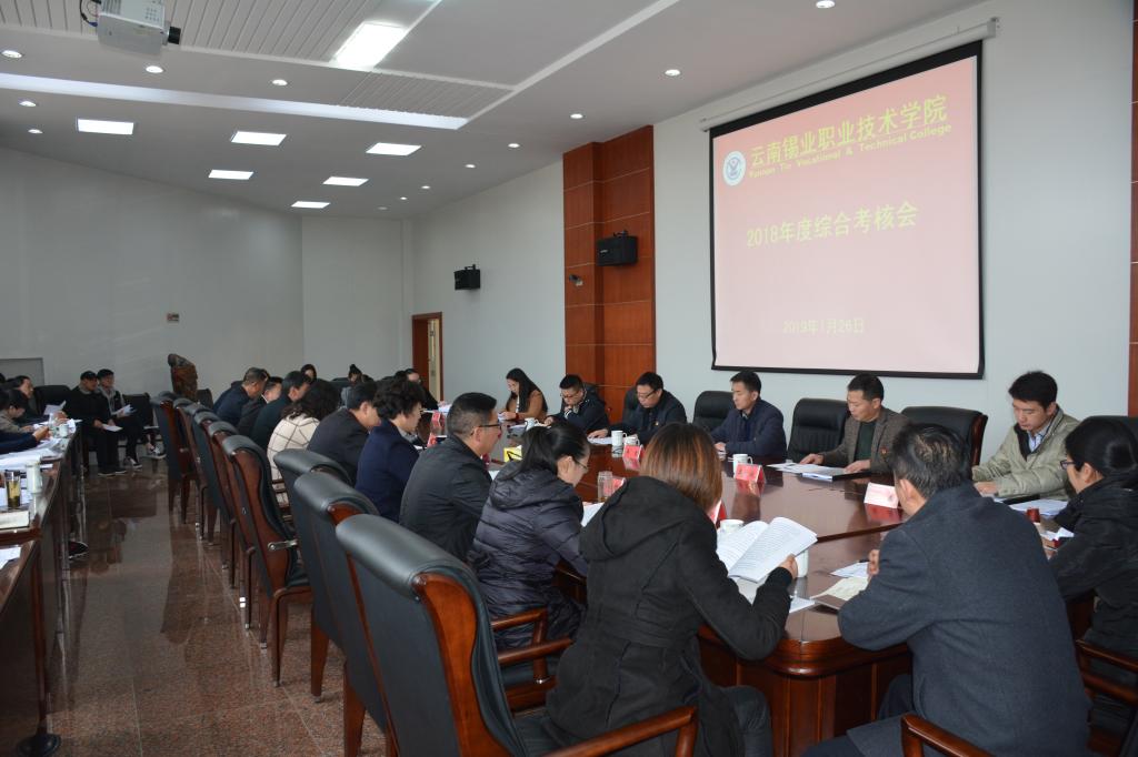 1月26日上午,控股公司党委常委、党委副书记姚家立带领第二综合考评组到职业学院开展2018年度综合考核评价工作。对职业学院领导班子和领导人员进行综合考核评价、党建工作责任制考核、党风廉政建设责任制考核,同步开展职业学院党委2018年度选人用人“一报告两评议”工作。职业学院领导班子成员、各部门负责人及部分职工代表共40人参加会议,学院党委书记张鹏主持会议。姚家立作动员讲话。姚家立强调,综合考核评价既是“指挥棒...