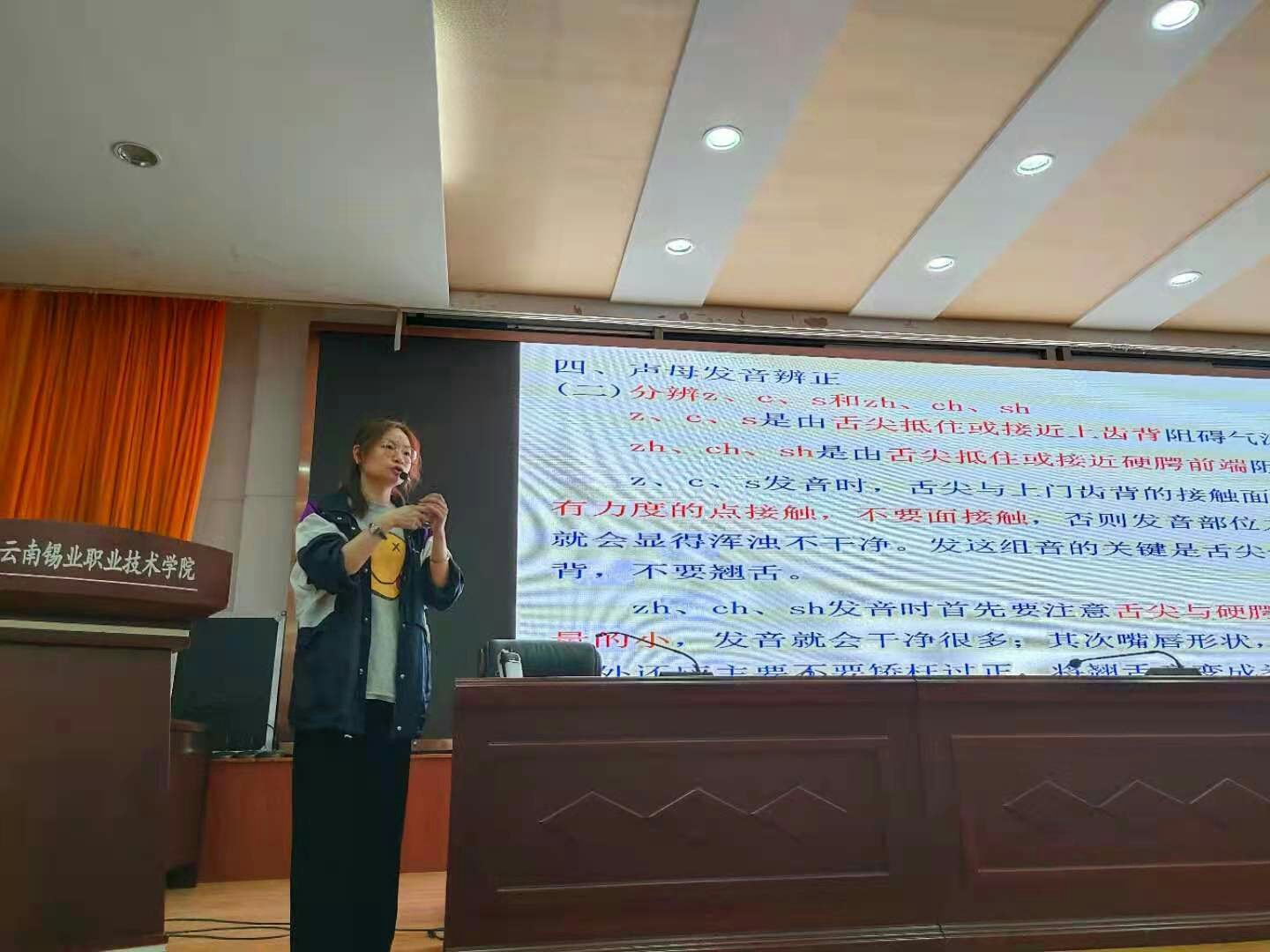 为引导学生讲好普通话,坚定文化自信,3月26日晚19点,基础科学部语文教师、云南省普通话测评员李玲晋老师为学院师生开设主题为“以声为媒,初心诵读经典”专题讲座,旨在提高学院师生的普通话表达能力,掌握基本诵读技巧。在此次讲座中,李玲晋老师阐述了讲好普通话的重要性,也为到场师生分析了一些在表达交流时的注意事项,介绍了诵读的意义与具体方法,教导同学们在日后的学习中要多听多练。讲座最后,李玲晋老师教导同学们...